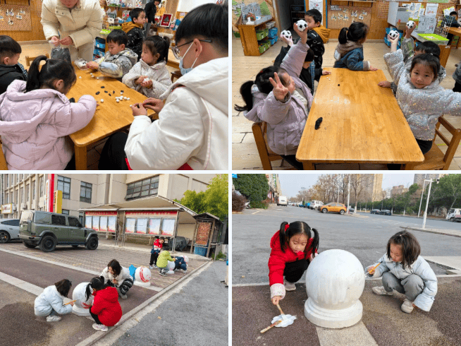 手工区域热闹非凡,粘土足球制作区,孩子们按照老师的示范,揉捏粘土,通过拼装、按压、塑形,制作出一个个造型别致的迷你足球;石墩足球彩绘区更是创意十足,孩子们化身“小小设计师”,手持画笔在石墩上勾勒足球轮廓、然后认真细致的填涂颜色,原本单调的石墩变成了充满童趣的风景线,为社区增添了一抹活力亮色。