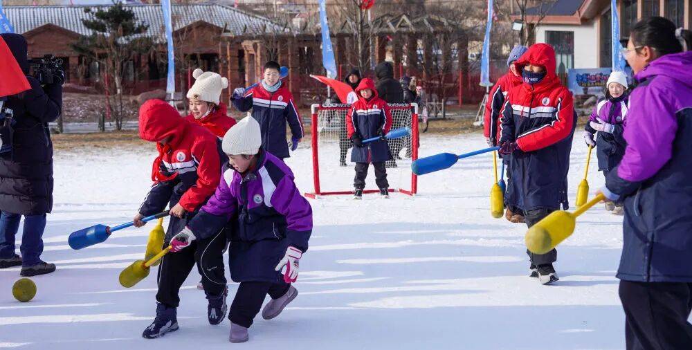 △ 12月3日,吉林市第二实验小学学生在吉林市纳美山谷度假区体验雪上软式棒球。新华社记者 颜麟蕴 摄