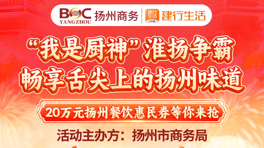 扬州将在现场推出总额达20万元的餐饮惠民券。此次发放的惠民券为满100元减50元券,限量4000张,每人限领1张。领券时间为2026年1月10日9:00-17:00,核销时间截至1月18日。市民可通过建行生活APP完成注册绑卡后,在活动页面领取,凭券前往扬州参与活动的近百家餐饮企业核销使用。