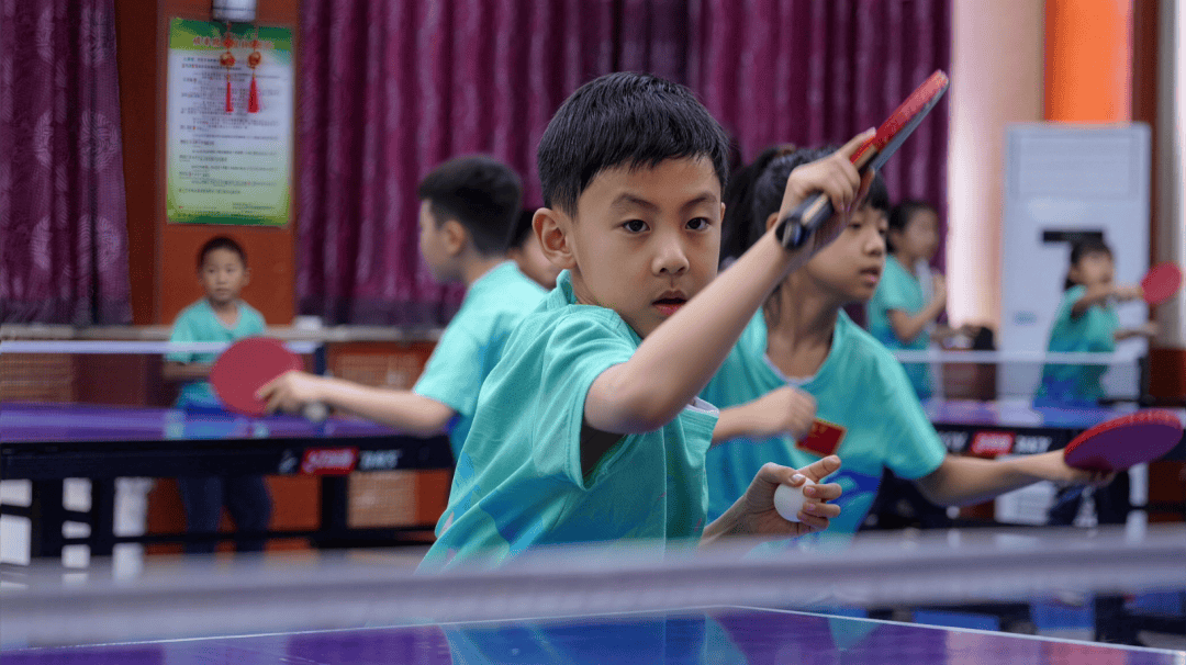 “刘浩然,打得不错!”该校体育教师季光辉站在训练挡网前送出不同角度的球,一名小男孩稳健地进行摆速训练,正手弧圈动作舒展,反手快撕合力轻盈。数十颗白球顺着球台划出一道道灵动的弧线,落入对面球网。