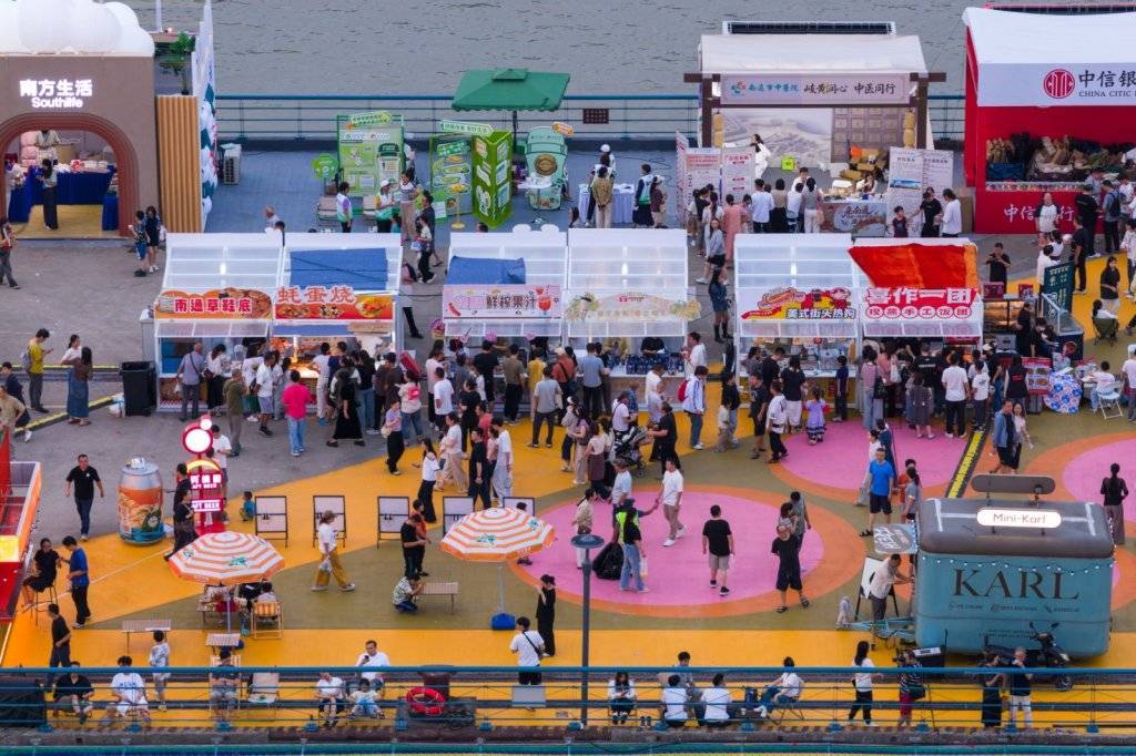 在美食展区的一角,“如皋水明楼白蒲黄酒”的摊位前同样人气十足。古朴的展架上陈列着不同年份的黄酒,“这次参加滨江文旅嘉年华,想让更多人尤其是年轻游客了解中华老字号。”水明楼市场部经理殷亚雷举起一杯黄酒,向记者展示其琥珀色的酒液。一位来自苏州的游客李珊珊品尝后赞不绝口:“以前对黄酒的印象还停留在传统宴席上,今天在滨江的摊位上尝到水明楼黄酒,搭配这里的江风夜景,感觉特别有韵味,老字号也能玩出新鲜感。”