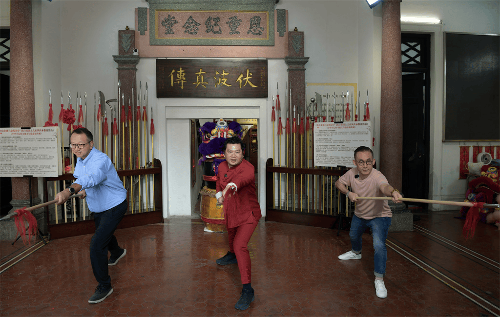 从小与祖父感情甚笃的马量豪也因此与故乡产生了情感,长大以后自发跟随祖父的脚步投身家乡建设。他不仅常带家人回来探亲,也在积极推动香港中山两地青年的体育交流。“我本人热爱足球,是业余的足球裁判,我儿子是香港足球总会的教练。我希望能以足球为媒,组织更多港澳青少年回中山参观交流,让更多青少年,像我当年那样,通过寻根之旅爱上家乡。”去年,他的儿子协助安排香港中西区足球队青年运动员参与了南区街道第一届社区足球联赛闭幕式暨大湾区足球交流活动。此次回村,他和马维德考察了位于马永灿祖居“恩重纪念堂”内的“南区沙涌(良都)龙狮武术艺术馆”,与当地青年交流中山市非遗——沙涌马家枪。