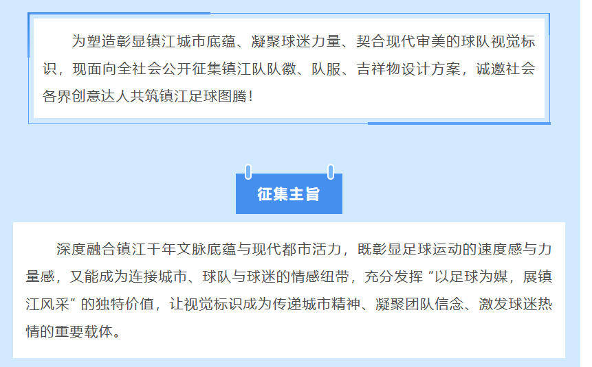 继苏州与扬州之后,镇江和常州两队也加入了这一阵营,开始征集队徽的设计。镇江的要求较为独特,征集的内容包括队徽、队服以及吉祥物的设计。镇江特别强调设计应具有原创性,并深入融合镇江的文化特色。具体来说,要求设计巧妙地植入地方文化元素,彰显历史与现代的结合,同时突出足球的运动属性。值得注意的是,尽管镇江的特色产品为“醋”,但他们并没有要求吉祥物必须与醋相关,因此设计者将有更大的创作空间。相比之下,南通队选择了狼作为吉祥物,盐城队则选择了麋鹿,苏州队的吉祥物则是小龙虾,镇江的吉祥物设计将更具挑战性。